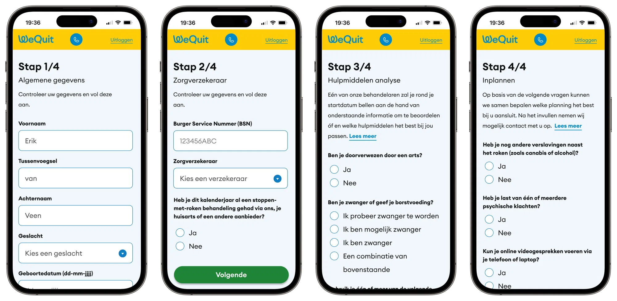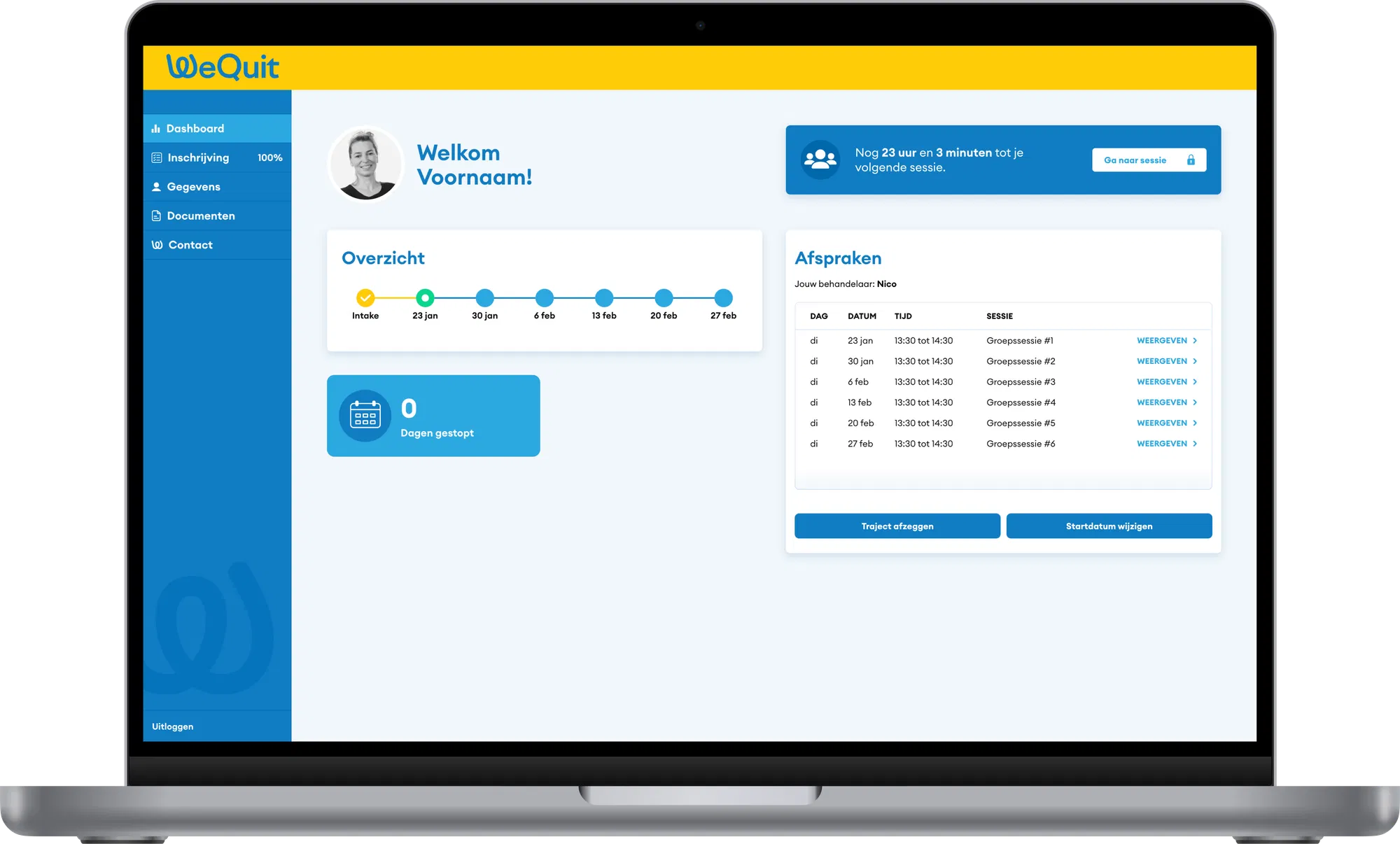 Voor WeQuit hebben wij 'Nico' gebouwd: de omgeving waarin deelnemers zelf hun stoppen-met-roken behandeltraject kunnen inplannen.